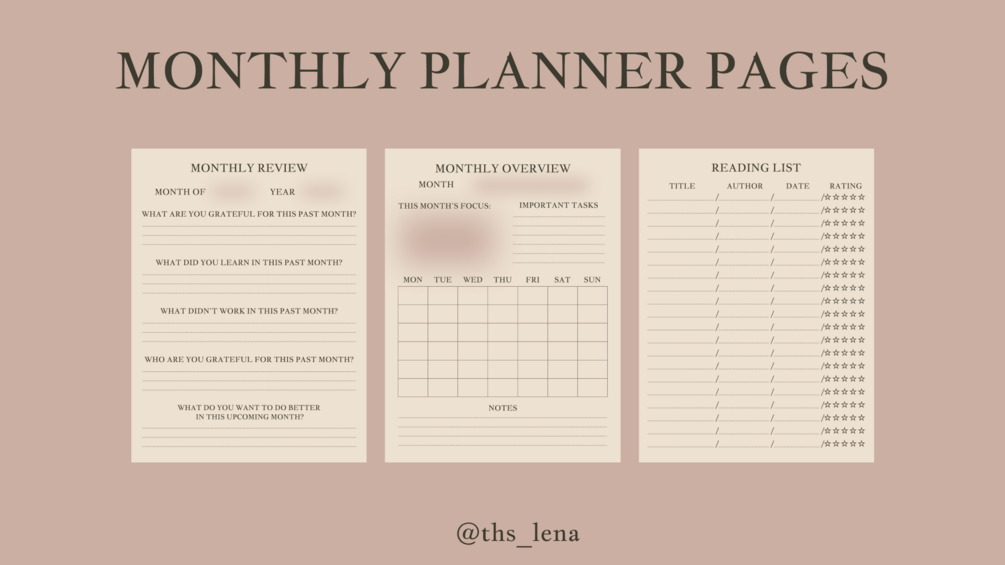 Hey there! Check out this digital planner pages that comes with a monthly planner, monthly review, and reading list!